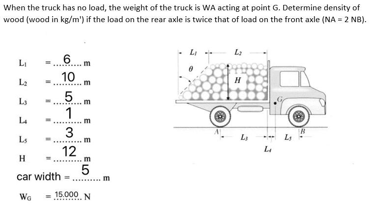The Truck Shown Is Loaded With Logs When The Truck Is Empty It Has A Mass Of 3000kg Which Is Acting At G Assume That The Logs Are Uniformly Distributed Across The